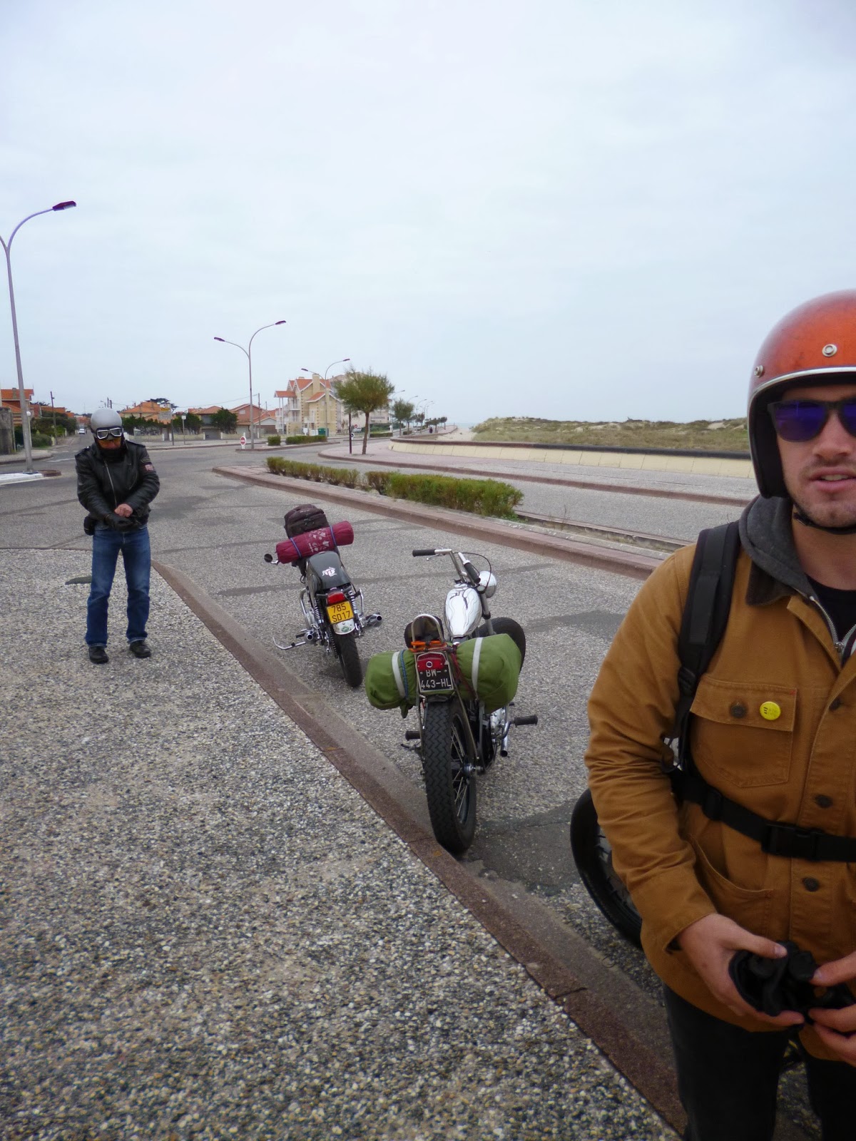 Alvaro sur son chop 70's, à fond sur l'autoroute à l'entrée de Santander.